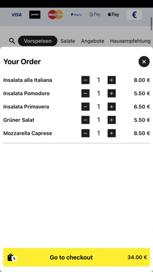 - Durchsuchen Sie die Speisekarte des Restaurants und sehen Sie sich alle anpassbaren Optionen im Voraus an