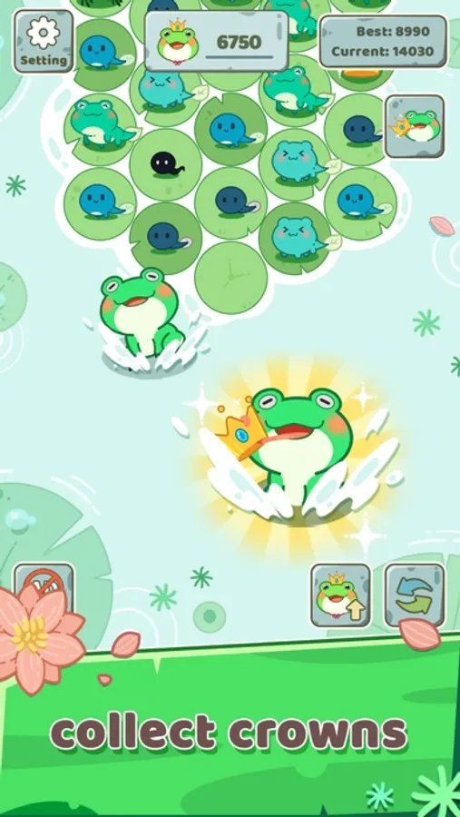 Every frog prince you got is counted in your career record and we never zero it! Also you can pause at anytime then continue whenever you want. So, please enjoy the world of a simple、fresh、and pure pond that with tons of fun and cute frogs.