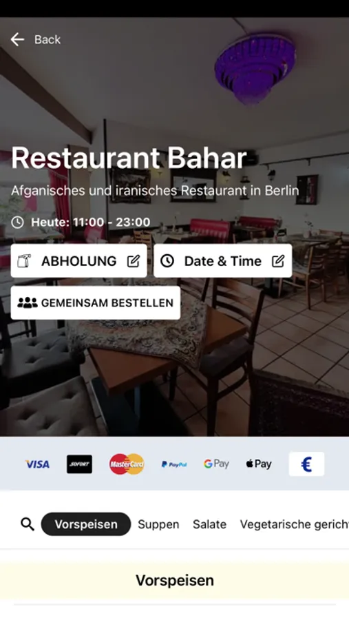 Ihr Wunschgericht ist nur ein paar Fingertipps entfernt. Laden Sie noch heute die Afganisches und iranisches Restaurant in Berlin App herunter.