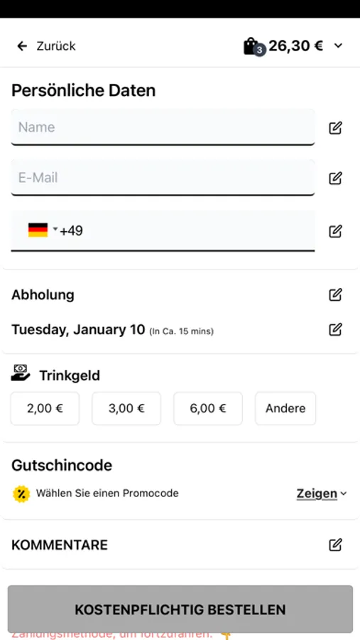 - Durchsuchen Sie die Speisekarte des Restaurants und sehen Sie sich alle anpassbaren Optionen im Voraus an