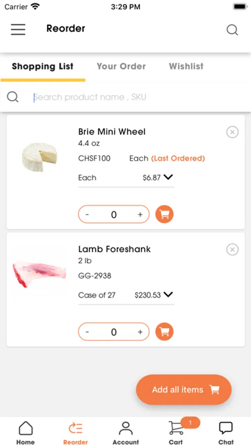- Add products to your Order Guide or easily search your last orders for quick and simple reordering,