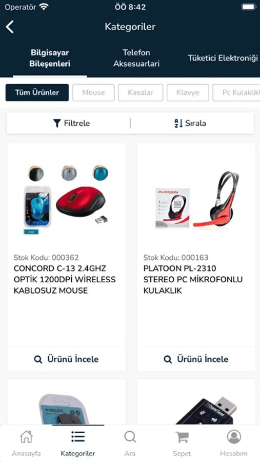 * Ürün kategorilerinde filtreleme yapabilirsiniz