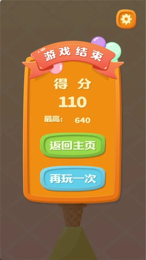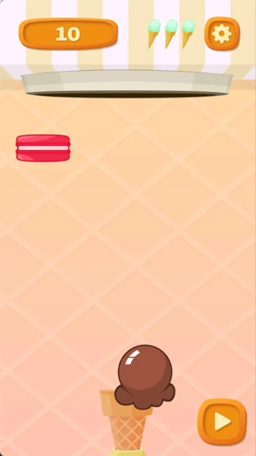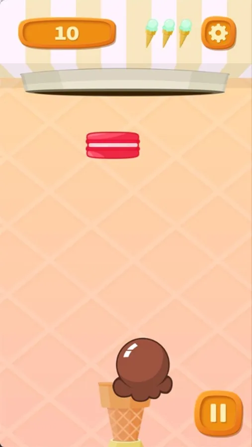 游戏玩法:游戏一开始就有空的甜筒饼乾,玩家需将可食用的食物逐一堆叠,比如冰淇淋、卷心蛋糕、马卡龙或水果,每次堆叠成功且在准确位置时,将获得高额积分,最高单次可达30分。倘若堆叠失败,或者堆叠到不能食用的食物,比如香蕉皮、炸弹等,将会扣除玩家生命值,当生命值归零时,游戏立即终止。游戏最后会展示冰淇淋堆叠成品。