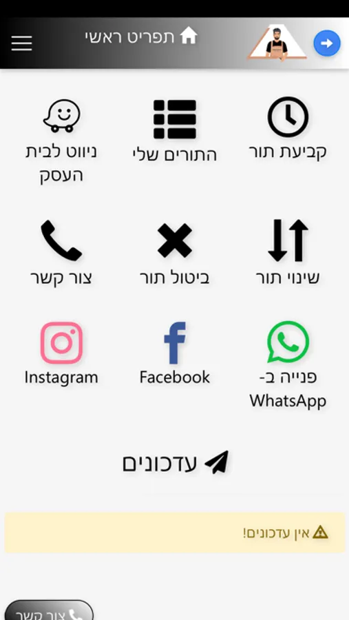 באפליקציה אפשר לקבוע תור, לנווט באמצעות Waze ולפנות אליי באמצעות WhatsApp.