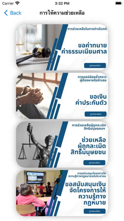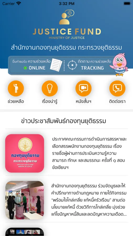 JF Services Application สำหรับประชาชนที่ต้องการความช่วยเหลือจากกองทุนยุติธรรม สามารถยื่นคำขอได้อย่างสะดวกรวดเร็ว สามารถติดตามผลการดำเนินการได้ Real Time พร้อมทั้งยังมีสาระน่ารู้เกี่ยวกับกองทุนยุติธรรม