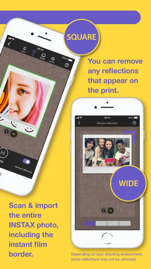 Hold your Smartphone over an INSTAX MINI, SQUARE or WIDE photo when in Scan mode to save your INSTAX photos, digitally. The INSTAX UP! App scans and imports the entire INSTAX photo, including the instant film frame.