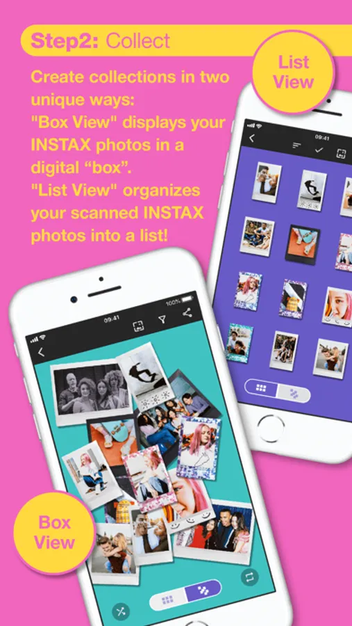 Create your collection & view it within the INSTAX UP! App in two unique ways...