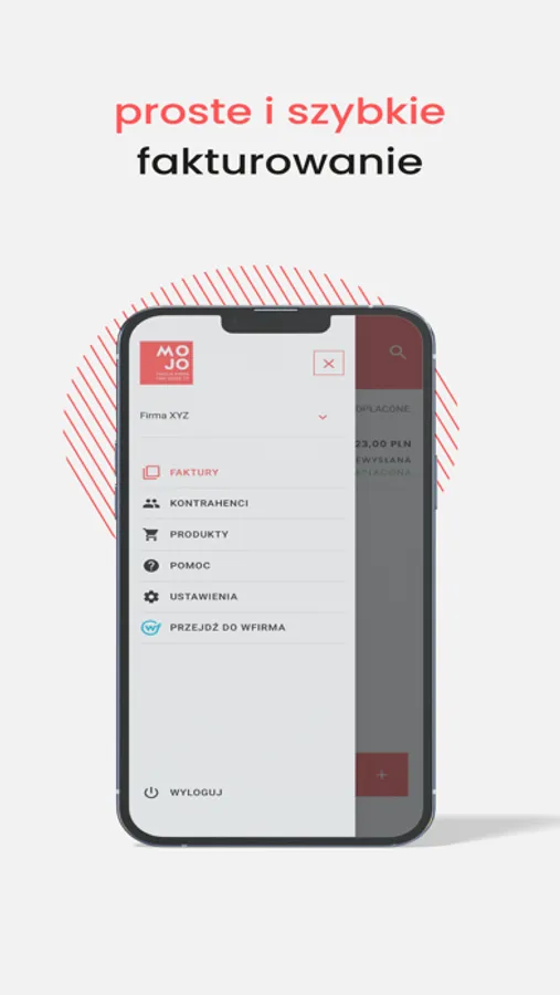 Aplikacja MOJO zintegrowana jest automatycznie z rozszerzonym oprogramowaniem do fakturowania wFirma.pl. Szybko na nie przejdziesz, dzięki czemu zyskasz więcej potrzebnych Ci funkcji, a w tym: