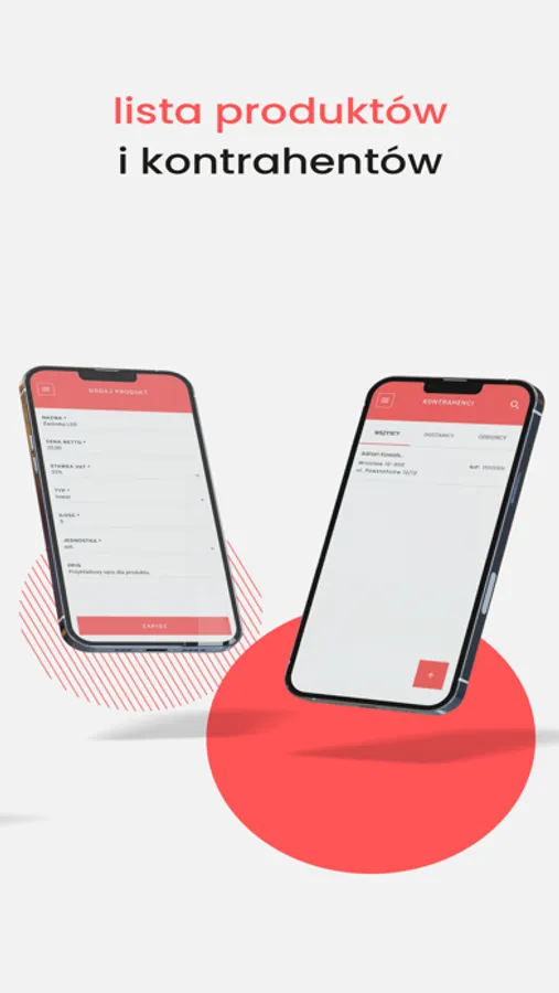 wybierasz kontrahenta z katalogu lub jeśli to nowy klient to po wpisaniu NIP aplikacja automatycznie pobierze jego dane z GUS