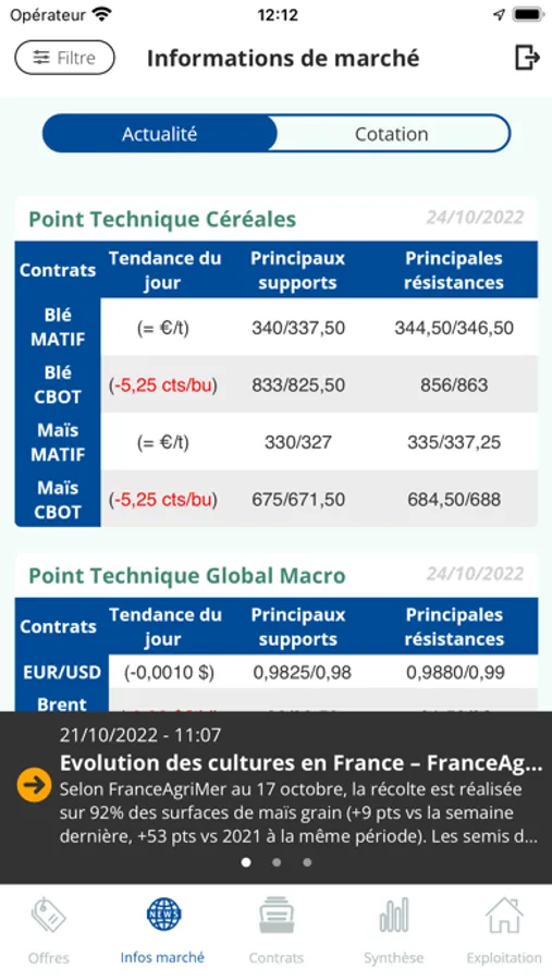Opti-A by Armbruster est une application dédiée aux agriculteurs et permettant la gestion de leurs ventes de production agricole céréalière vers le négociant Armbruster. Nous vous proposons de vendre en quelques clics votre production de blé, maïs ou encore colza via vos contrats filières, contrats à prix ferme, contrats à prix objectif et contrats avec option). Découvrez dès maintenant nos différentes offres !