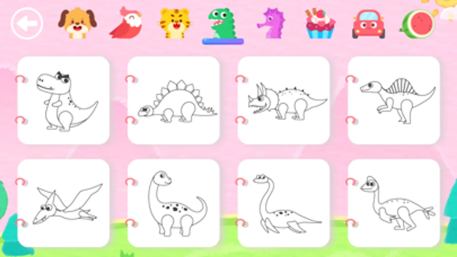 There are many types of picture books: DuDu coloring book has 8 types of pictures: farm animals, birds and insects, forest animals, ancient dinosaurs, marine animals, gourmet desserts, vehicles, attractive fruits, etc. Cute patterns, abundant creation resources, and uninterrupted fun;