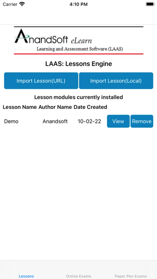 The LAAS exam engine is assessment and learning engine in to one to import and view question database and lessons which can be populated and edited by various authors. Assessment and learning engine can be used by candidates to login and take exams, or to import the lessons and learn. Paper Pen Exam Engine can be used by candidates to take offline exams and submit the answer sheets for correction by examiner.