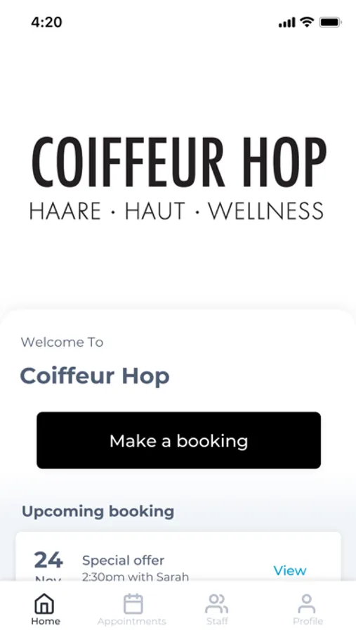 The Coiffeur Hop app makes booking your appointments and managing your loyalty points even easier. You're just a few taps away from feeling good and looking great!