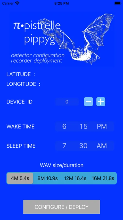 This tool gives you a convenient and reliable method to set the real-time clock, device ID, deployment latitude and longitude, and wake and sleep times for the PIPPYG bat recorder, and π•pistrelle bat detector in the field, using just your phone and the onboard microphone, without requiring a reflash of the device.
