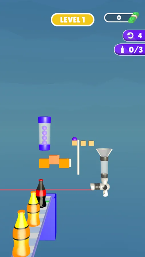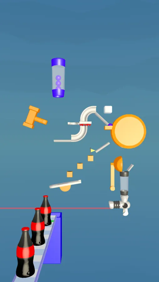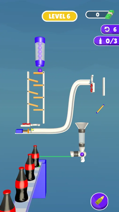 The balls placed in this machine are like a bullet! Aim the bottles with the laser launcher.