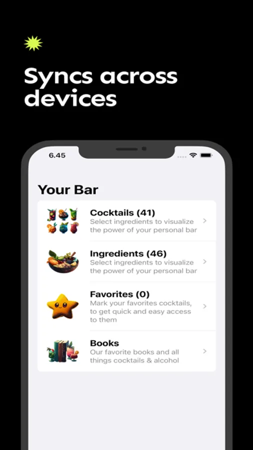 - Home ingredients, mark which ingredients you have at home and let us tell you which drinks you can make