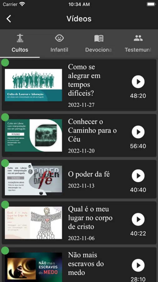 - Vídeos: Cultos, Mensagens Infantis, Devocionais, Testemunhos