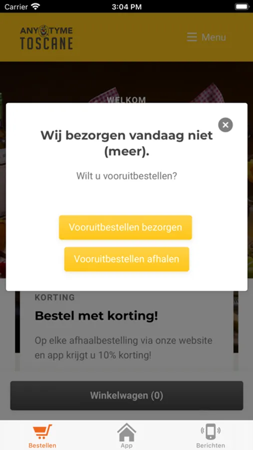 Download onze app en blijf op de hoogte van het laatste nieuws en de nieuwste acties, aanbiedingen en kortingen. Via onze app kunt u onze menukaart bekijken en direct vanaf uw telefoon uw bestelling plaatsen. U kunt via de app ook met iDEAL betalen!