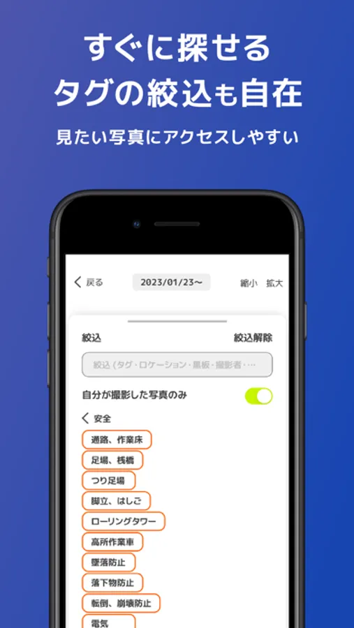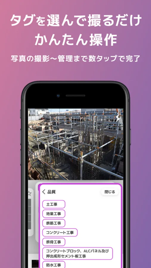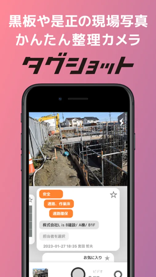 「タグショット」は、現場でかんたんに撮影・整理できるカメラアプリです。