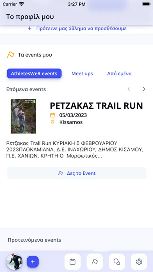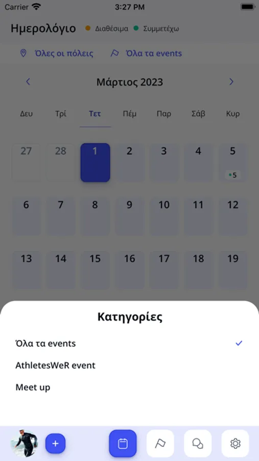 Στο AthletesWeR έχεις το calendar με τα αθλήματα που σε ενδιαφέρουν, και όταν μπαίνει ένα event στο calendar, σου έρχεται ειδοποίηση για να μην ψάχνεις και να μην χάνεις ποτέ κανένα event!