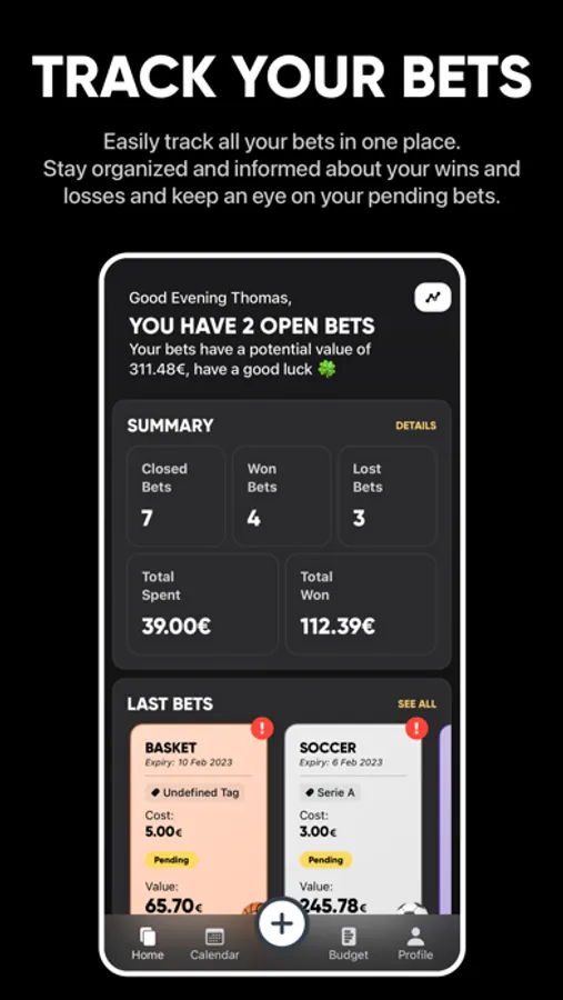 Download Betty today – the smartest way to track your bets, manage your sportsbook, and win more with data-driven bet tracking.