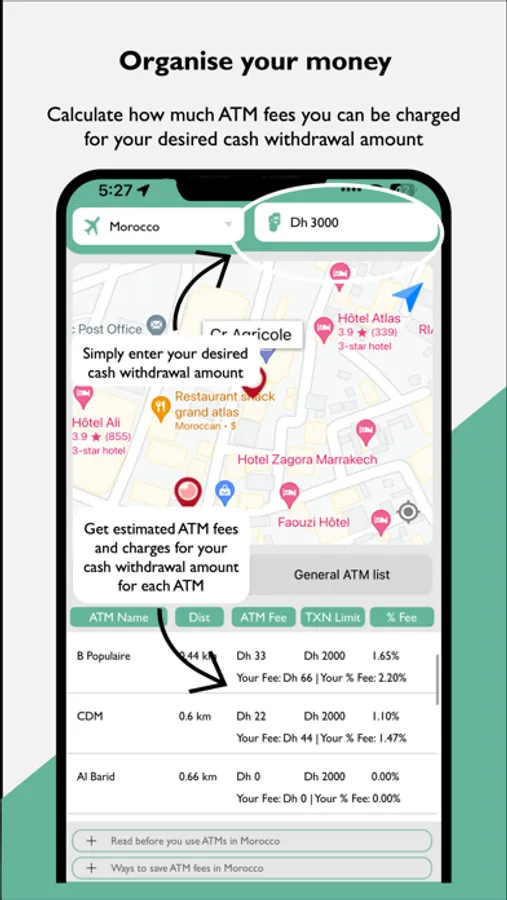 - In-built calculator to estimate ATM fees for your desired cash withdrawal amount