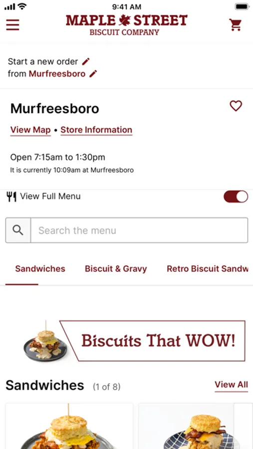 The Maple Street App has made ordering your favorites online easier than ever before! Enjoy our scratch-made biscuits and any of our tasty dishes from the comfort of your own home, office, car, or anywhere you would like!