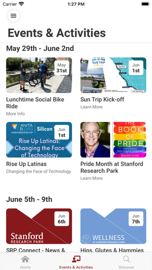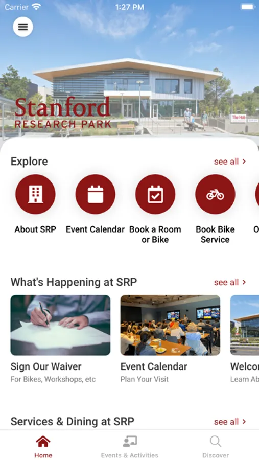 Discover the amenities, experiences, and people that make Stanford Research Park special. Interact through a variety of learning and social opportunities. We're glad you're here!