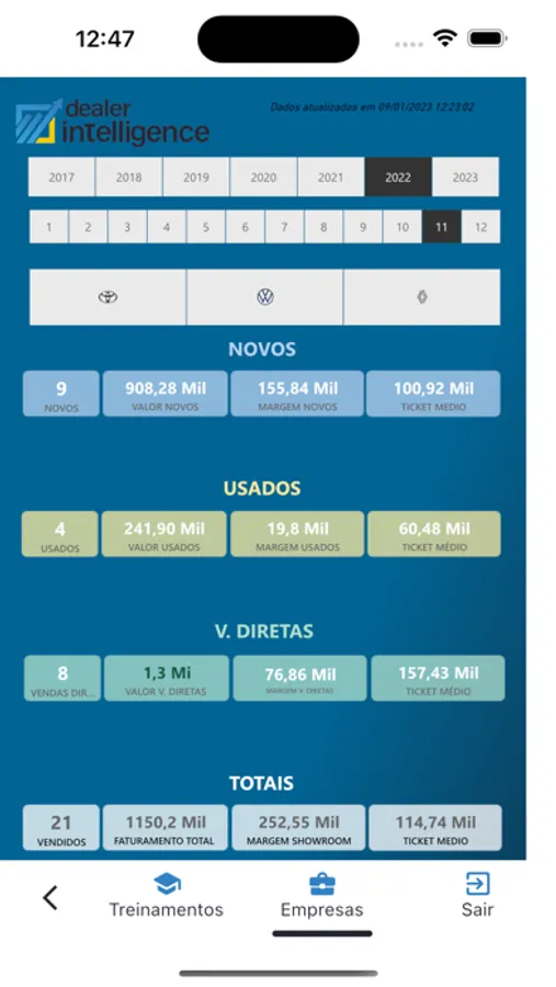 Através dele você conseguirá visualizar todos os indicadores da sua concessionária em um só lugar! Partindo de uma dor interna gerencial de um titular, onde ele esperava horas para visualizar os seus resultados em uma planilha, com uma difícil leitura e pouco detalhamento, que no momento em que chegava em suas mãos, os dados já estavam desatualizados devido ao tempo gasto na construção das planilhas. Pensando nisso, foi desenvolvido um BI, compreendendo todos os pontos vitais de uma concessionária, com os principais KPI's inerentes aos concessionários, o que possibilitou uma melhor gestão do negócio, deixando-o saudável através de estratégias analíticas dos dados históricos e atuais da concessionária por meio da utilização da solução em BI da Dealer Intelligence.