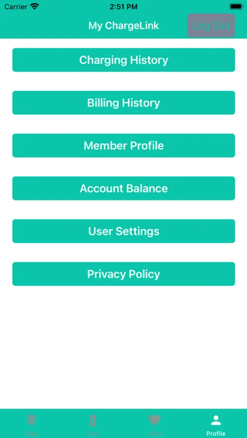 Additional features include viewing charging session and billing history, managing payment cards, and editing their profile for ChargeLink members.