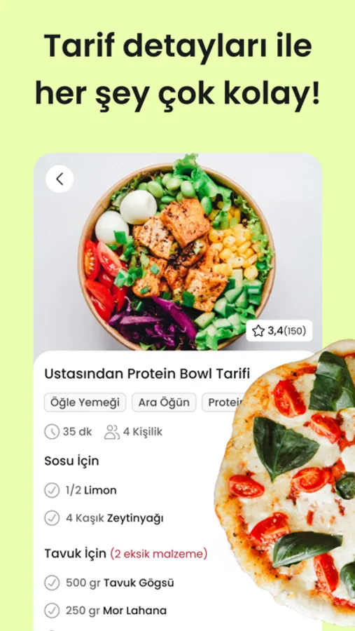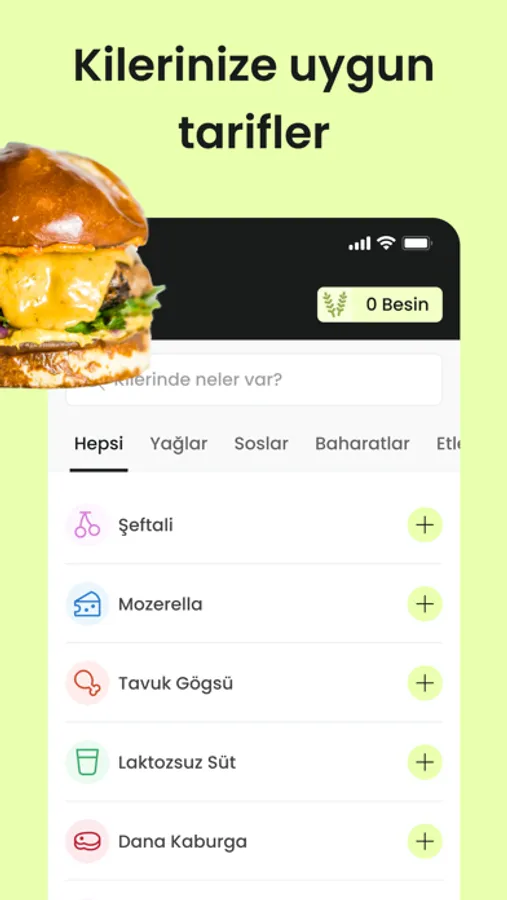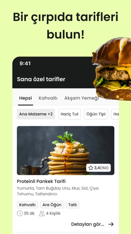 Kilerinizdeki besinleri taratarak size uygun yemek tarifleri öneririz. Detaylı tarif adımları ve malzeme ihtiyaçları. Filtreleme ve arama özelliğiyle tarifler arasında gezinin.