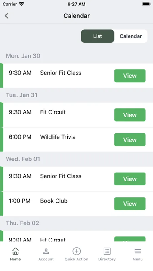 - View calendar of events and sign up