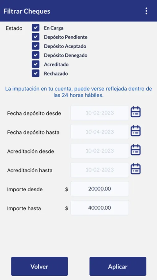 - Hacé el seguimiento online de tus depósitos a través de las consultas de la app. Verificá tus acreditaciones y rechazos.