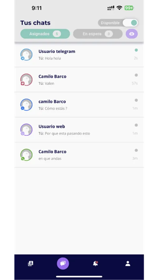 We unify your WhatsApp Business, Instagram, Facebook Messenger, Telegram and Website chats in a single chat center platform, in addition to automating the attention of your digital channels with our Piyi chatbot.