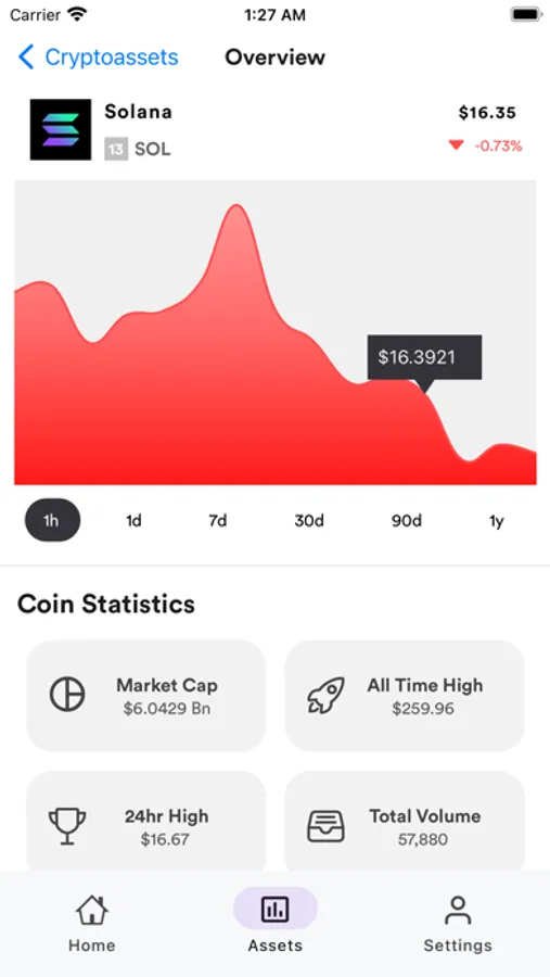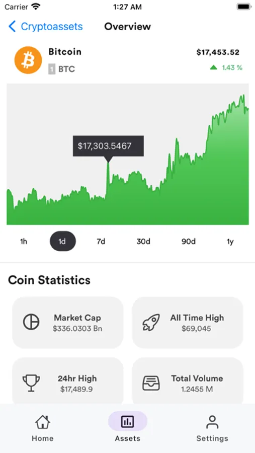 7. See an asset's overview (chart, price rise or drop, all time high etc).