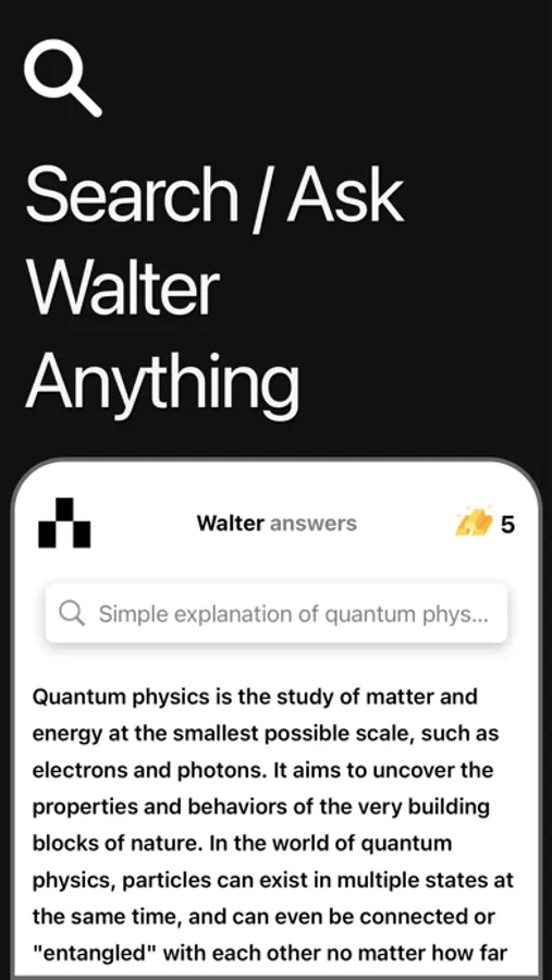 WalterAI can: Translate languages, generate content, and answer any question you may have.