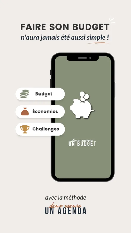 Cette app permet de suivre son budget avec la méthode de Deux Soeurs Un Agenda®. Une méthode qui a déjà changé la vie de milliers de foyers!