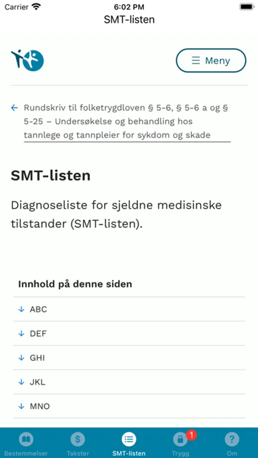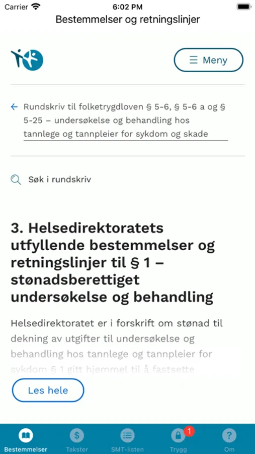 - Helsedirektoratets utfyllende bestemmelser og retningslinjer til § 1 – stønadsberettiget undersøkelse og behandling