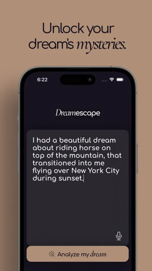 Dreamescape offers a one-of-a-kind experience that combines the convenience of a dream app with the depth of a dream interpreter, providing meaningful insights that can help improve your mental and emotional well-being. With Dreamescape, you'll never see your dreams the same way again.