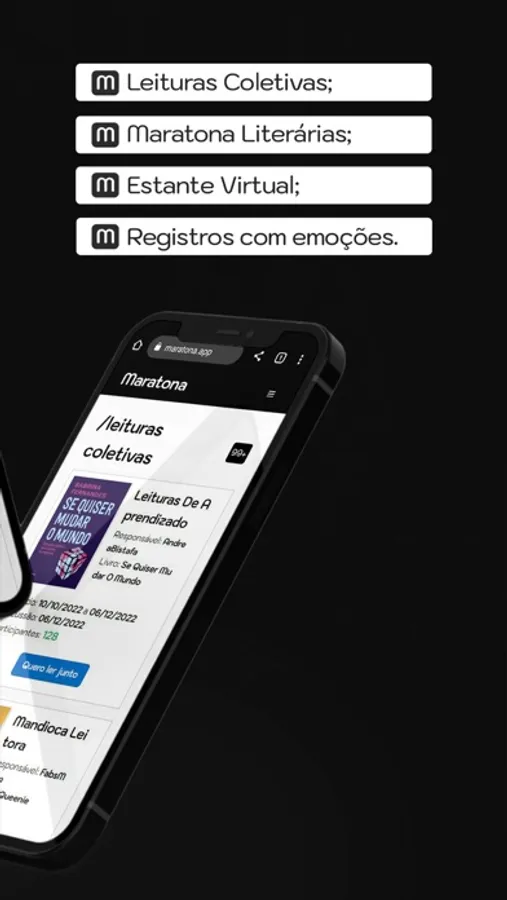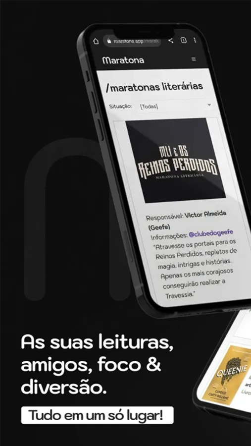 Sua nova plataforma de literatura. Encontre leituras coletivas de seus livros favoritos, organize maratonas literárias com outros leitores, monte estantes virtuais customizadas e registre seus hábitos de leitura, tudo em um só lugar. Crie seu perfil como leitor e faça parte de uma nova comunidade.