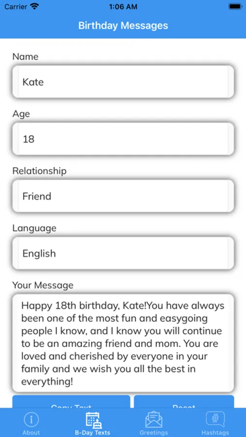 GreetifyAI utilizes the cutting-edge technology of OpenAI to generate its messages and hashtags. While the app is designed to provide personalized and high-quality messages, there may be instances where the generated text is incorrect or misspelled. In such cases, users can simply try again, as the app's AI algorithms ensure that each new generation of text is different from the previous one. This feature allows users to explore multiple options, guaranteeing that they always end up with the best message for their needs.