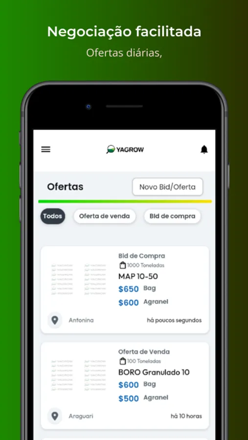 Negocie fertilizantes na Yagrow, a única plataforma online que reúne compradores e vendedores desse insumo em todo o Brasil.
