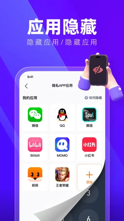 隐藏应用大师可完美多开应用/游戏进行隐藏,还拥有图片/视频的私密空间,以及伪装成计算器图标,真正实现自我安全隐身,保护隐私安全。