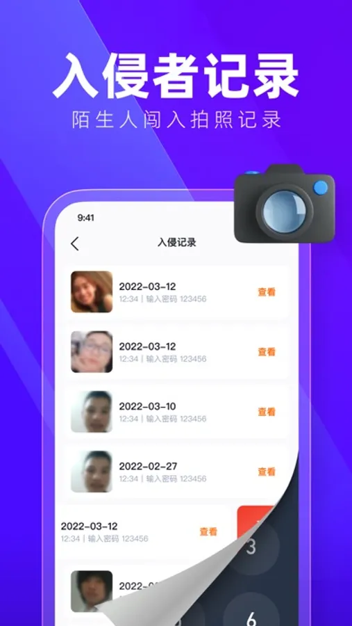 让陌生人输入错误密码时,会自动拍摄下正面面部照片,安全可靠的隐私空间。