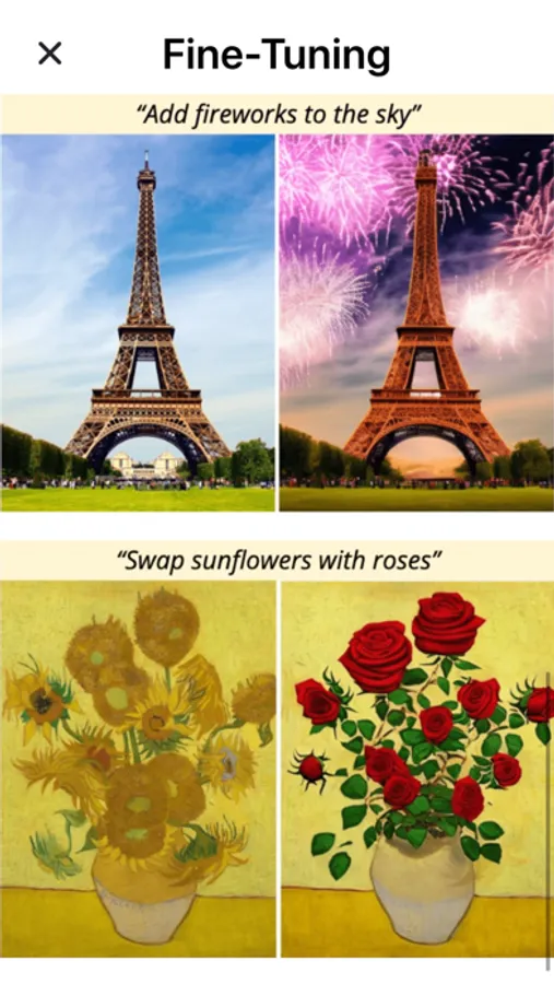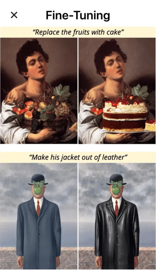Edit images with simple instructions! Fine-tune specific details in the image thanks to the combination of GPT-3 language model and text-to-image diffusion model.
