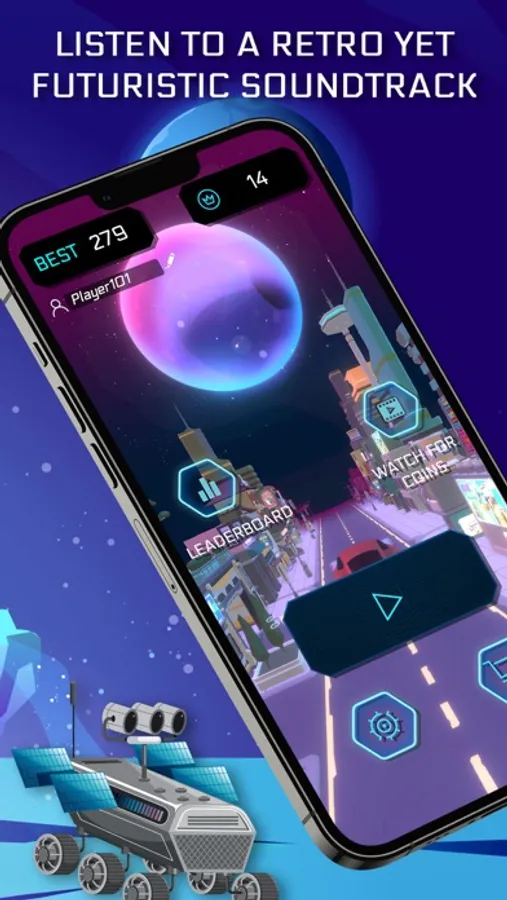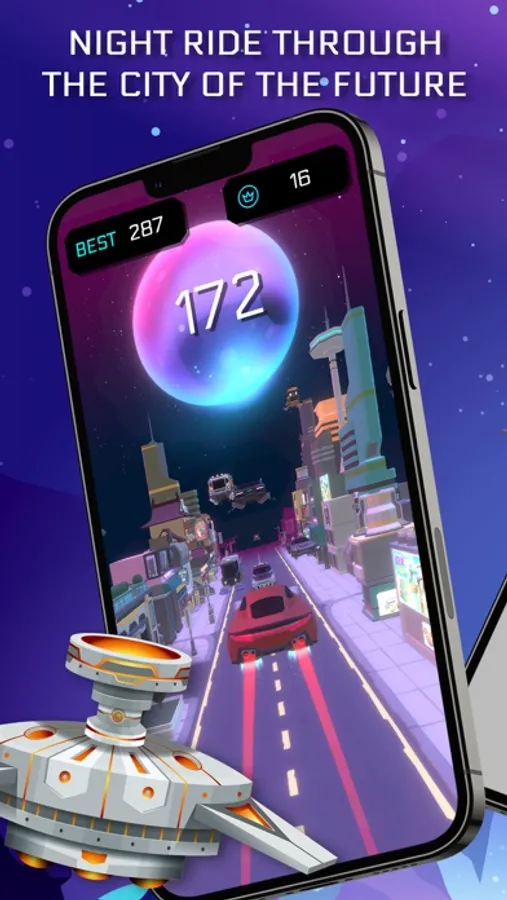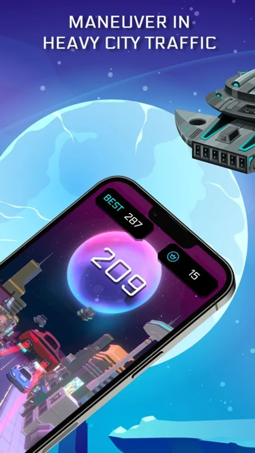 Try to stay in the traffic as long as possible with the flying jet robot car to achieve amazing high scores. Always improve in the effort to top the global leaderboard of Moonlight Drive players. Can you become the ultimate extreme flying car rider?