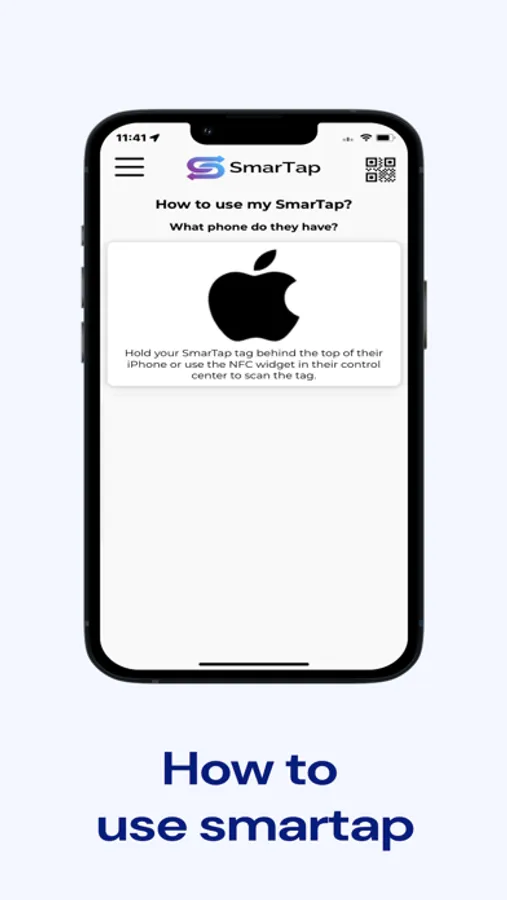 To get started hold your SmarTap Tag on the back of your phone to activate it and link it to your account. Your tag will store your details and it is ready to share. The best thing is other people don't need the app to get your info.