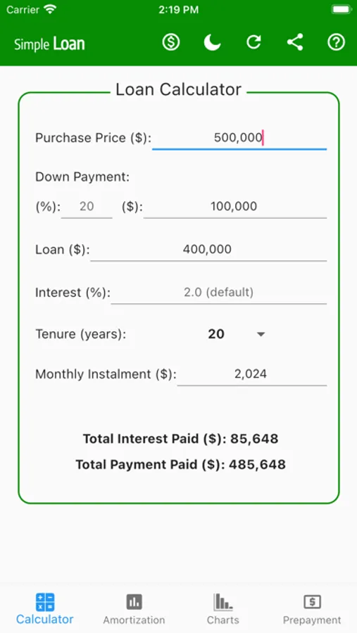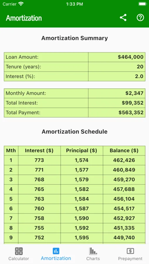 Simple Loan calculation (Housing and Car), amortisation and prepayment information.