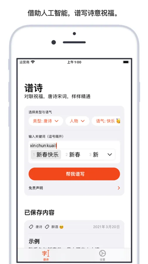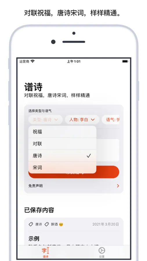 Download now and experience it! Let's feel the charm of poetry creation together, and have a conversation with poets like Li Bai, Du Fu, and become a great poet!