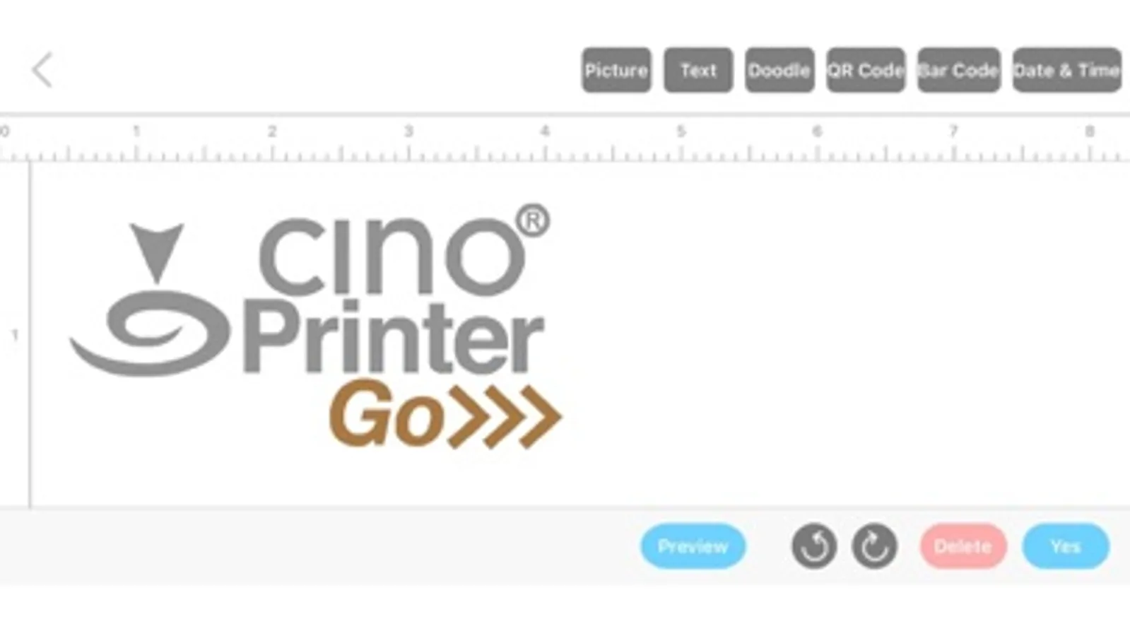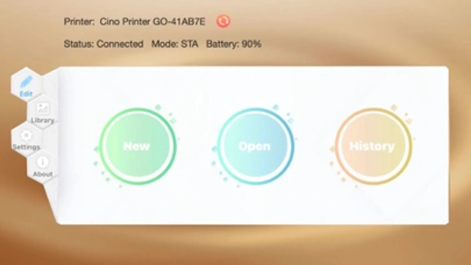 This is the Cino Printer GO support app. It can communicate with the mobile portable printer via the phone's WiFi. It can edit images, text, doodles, QR codes, barcodes, and date/time stamps, then transfer them to your portable printer and print. It can Save images in the History so as not to always send them but to print them directly whenever you want. You can query the status of the mobile printer such as battery life and check its settings. You can choose to print in one line or multiline to print larger shapes or lettering.